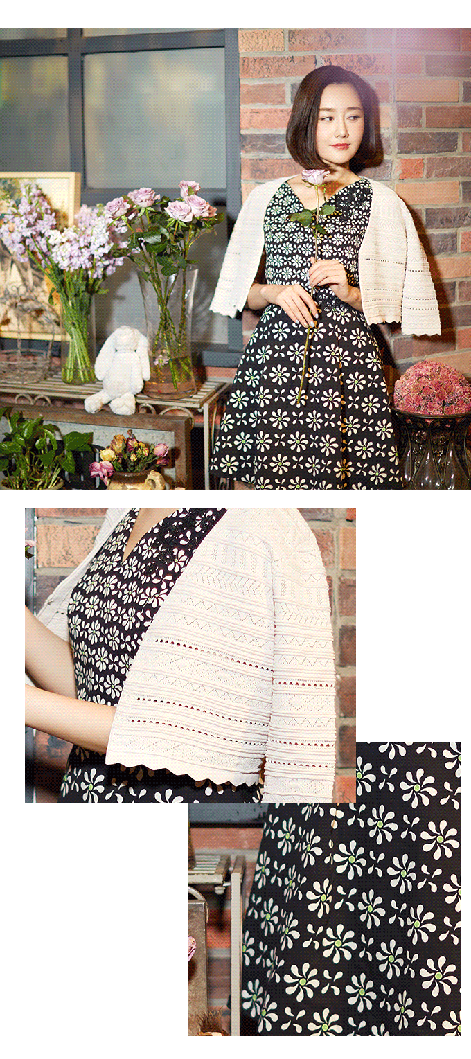 此款针织小坎肩材质上选用超细支曲珠纱,上身清爽舒适;女性化的电脑织机理与系列花型交相呼应,女性气息十足。