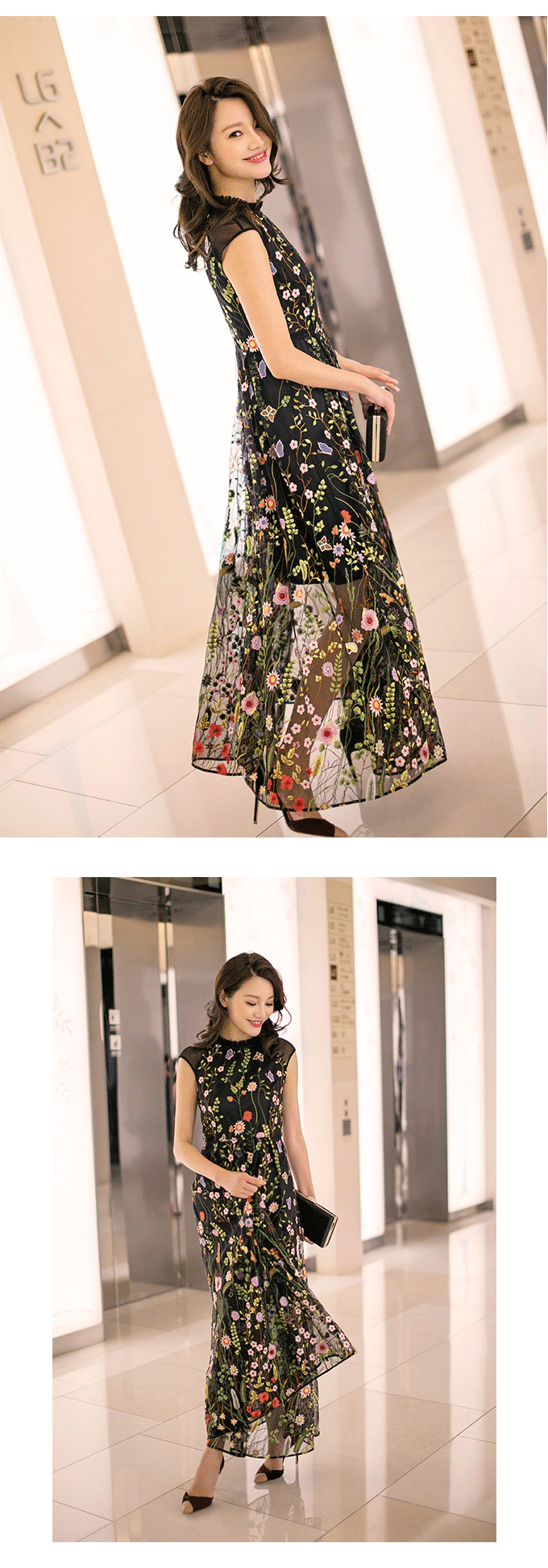 精致的刺绣将自然博物馆的灵感主题用传统工艺留下记忆,花簇细腻,排列新颖,几何感的波浪增加面料的灵动韵律,彰显出棉布刺绣优雅的新风貌。此系列连衣裙着重体现暗叶疏影的韵味,领边精致的花边设计,钉珠织带的装饰,大弧度的版型都使得穿着连衣裙的您更加端庄大气。