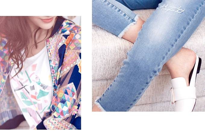 JZ玖姿时尚九分牛仔裤,破洞装饰,俏皮减龄,非常百搭,今年夏日的必备单品之一。