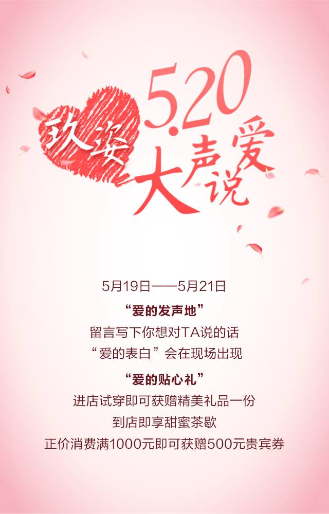 忙碌生活总需要一些浪漫点缀,借由各式各样的美好节日,向重要的人充分表达心中情感,是绝佳浪漫。而浪漫是每个女人的必备梦想,于是5月20日这个被赋予浪漫寓意的日子,为每个女人打造出了一段值得期许的浪漫时光。