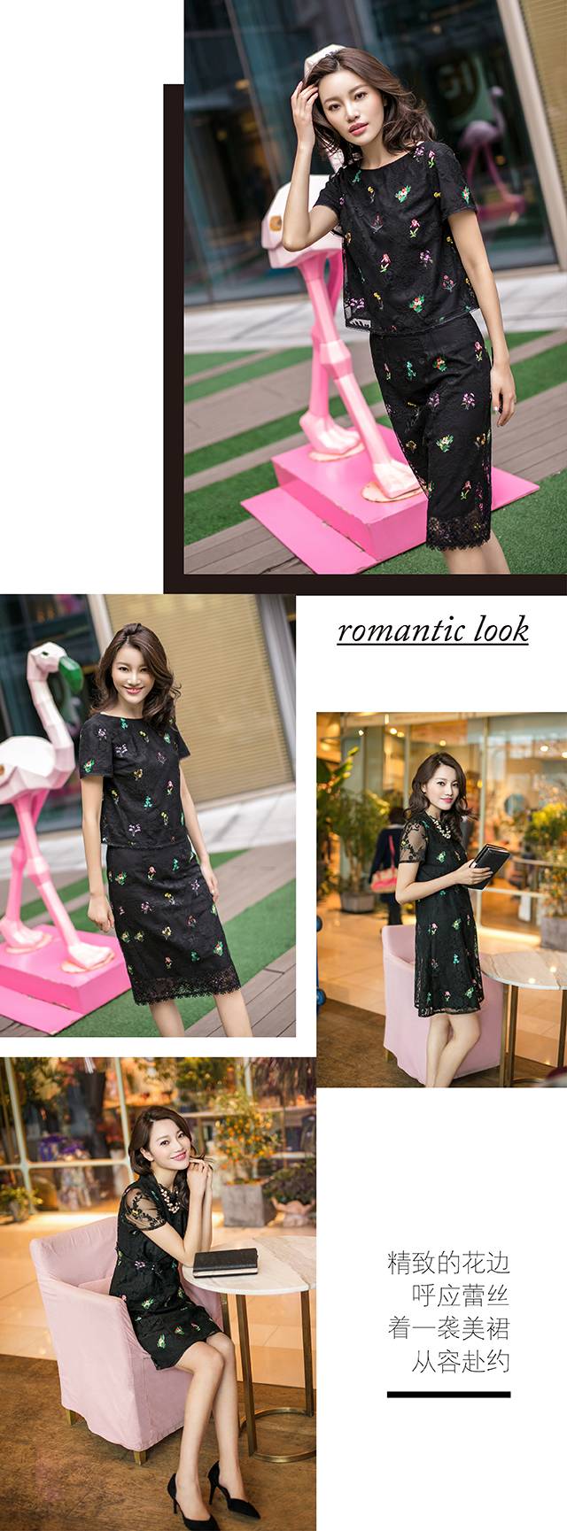 黑色网布蕾丝与彩色绣线间暗藏女性的多变情绪,一场唯美浪漫的仲夏之梦正式开启,精致的花边呼应蕾丝,细致的边缘细节展现女性的优雅浪漫。着一袭神秘美裙,从容赴约。