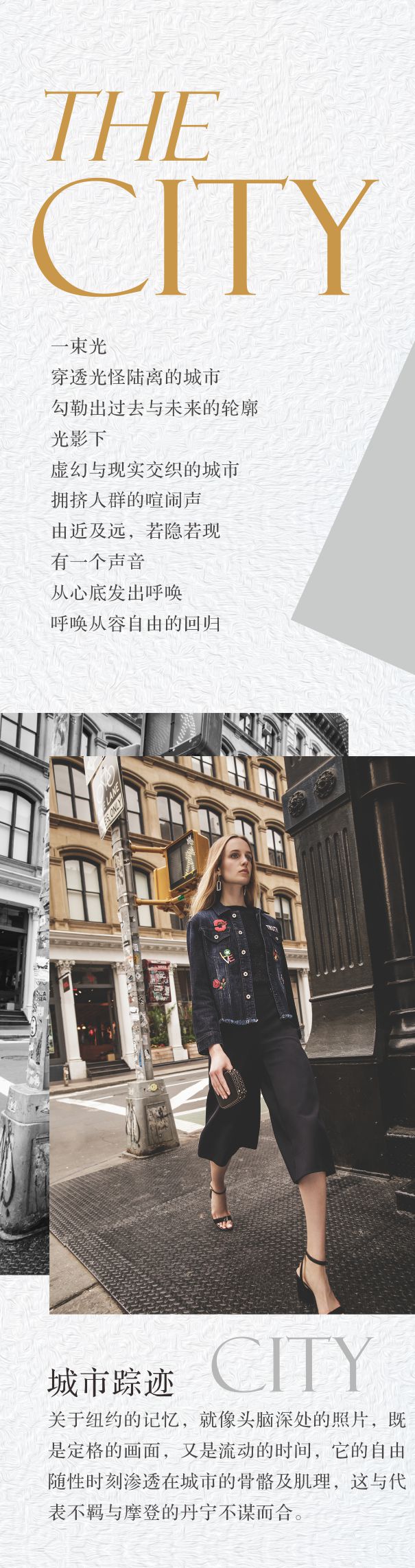功成名就的艺术家和落魄的街头艺人,自信满满的金融精英和无所事事的流浪汉......每个匆匆行走在城市的人,都在梦想的路途上奔波。夜晚的纽约,在霓虹灯光下散发另一种魅力,充满传奇色彩的百老汇到处是参加舞会的年轻人,第五大道的街上灯火璀璨,点亮着每个女人的梦境......永不停歇的灯光,永不褪色的从容,人群之中,光影之间,这是纽约,这是JZ玖姿。