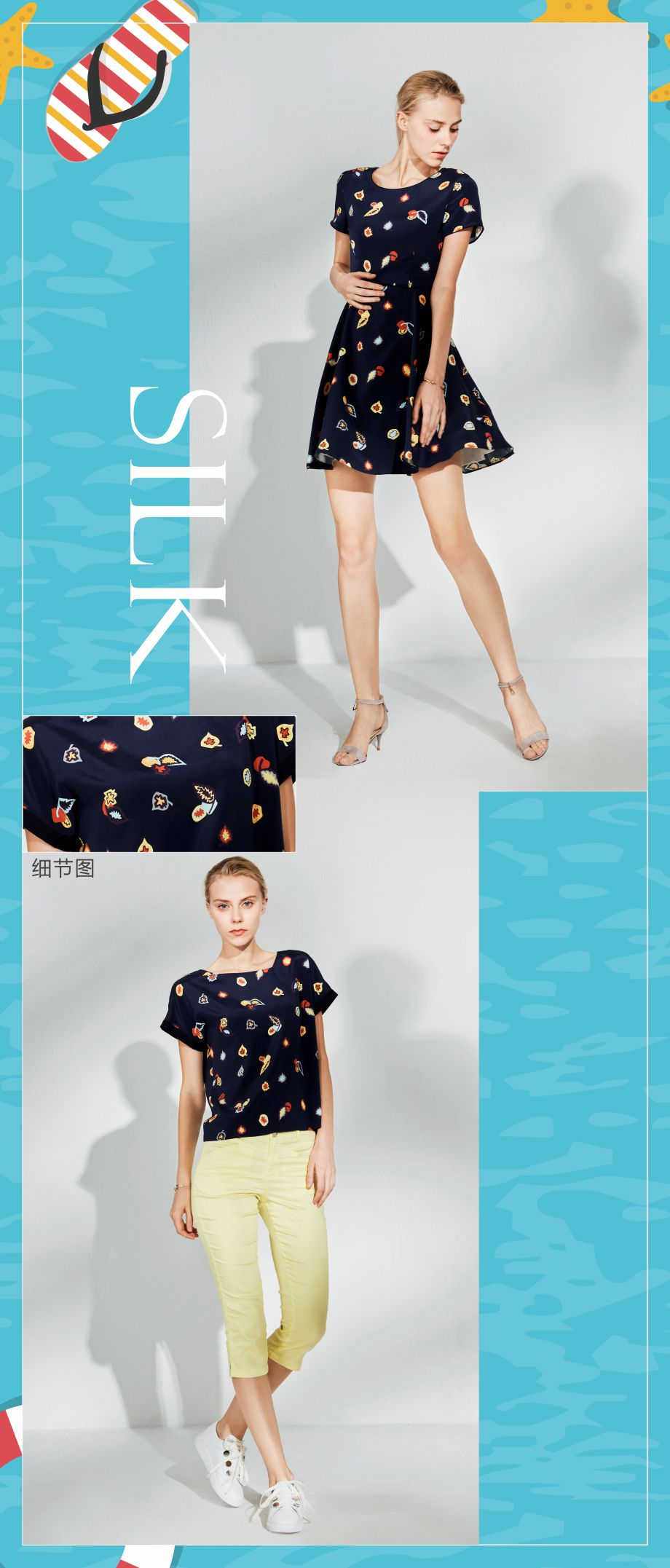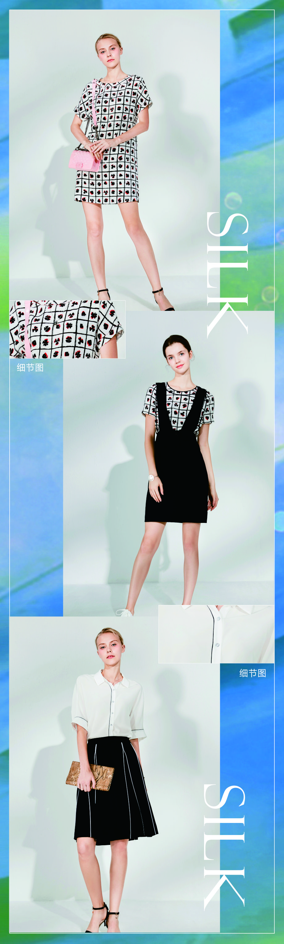 § JZ玖姿本季在真丝中加入少量氨纶,使得其富有弹性,增加活动舒适度;