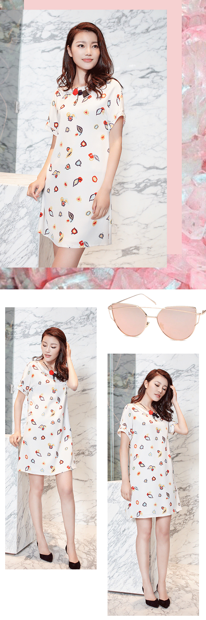 撕掉年龄的标签,熟女也能甜美如少女。以彩叶为花型的真丝短袖,不仅纷繁多样甚为有趣,且吸湿排汗兼防晒,舒爽痛快,搭配浅蓝牛仔短裙及小白鞋,既能回归甜美也不乏活力。同样适应夏天的还有这条白色印花连衣裙,穿着于身,甜美不失清新。