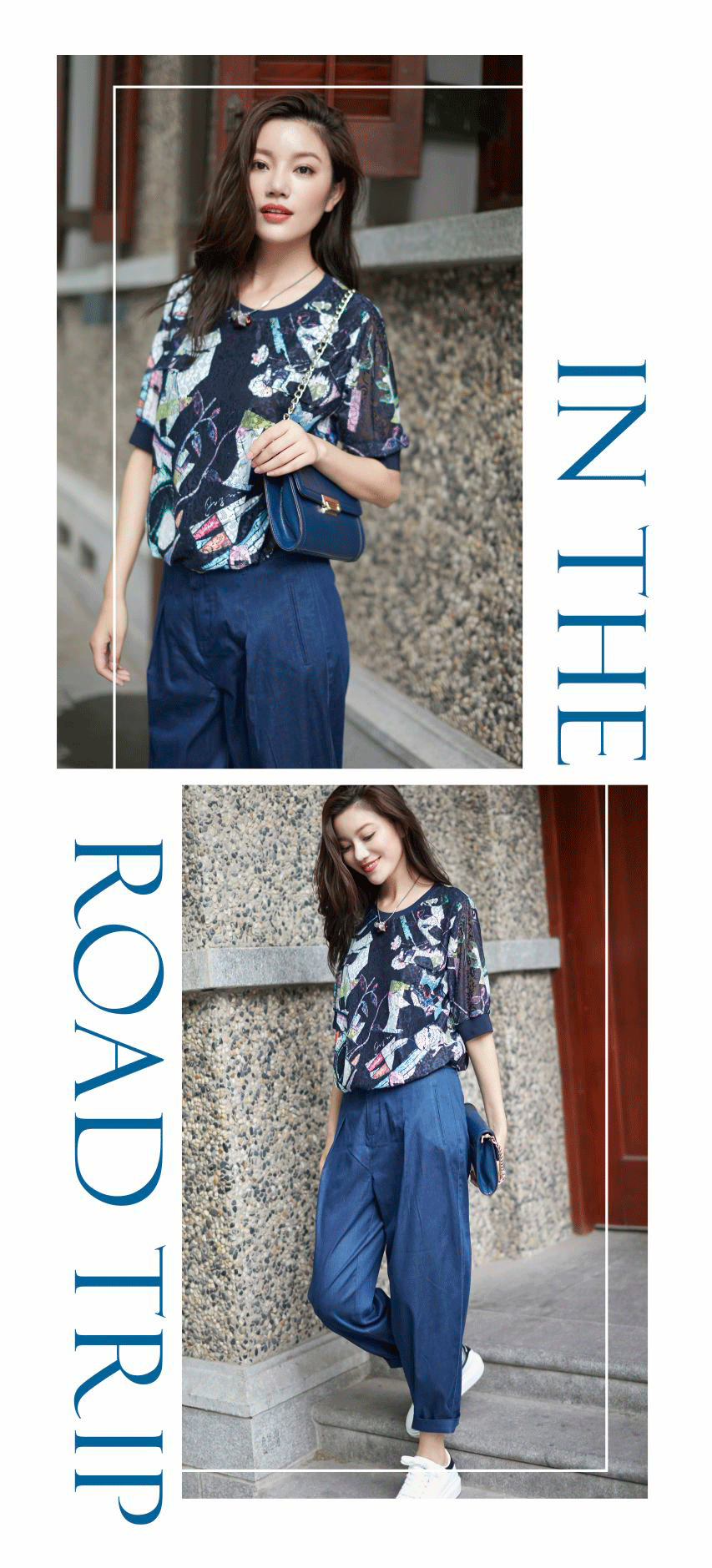 漫游童话世界,当然要足够有趣。“写意时光”原创花型上衣时髦有趣,静物花型以几何的形式结构重组,空气层面料自带现代感,减龄效果MAX,O型款式包容性十足,活动方便。