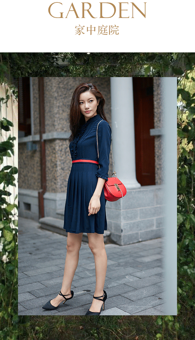 至对方家中做客,穿衣打扮无需用力,可依旧要保持得体,本款连衣百褶裙简洁大方,腰间节一抹橘色画龙点睛提亮视觉,背上一个红色小猪包,就能美美地出门啦。