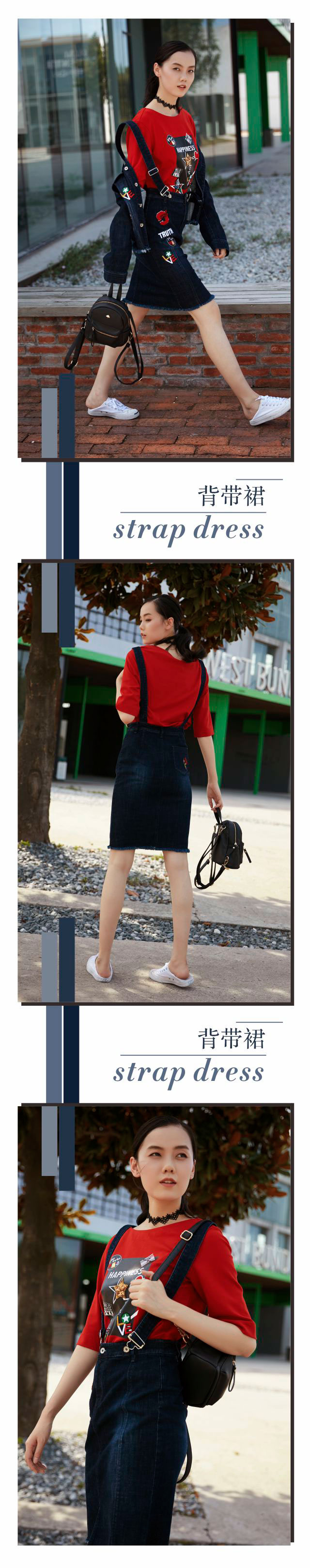 背带裙+标识上衣=时尚