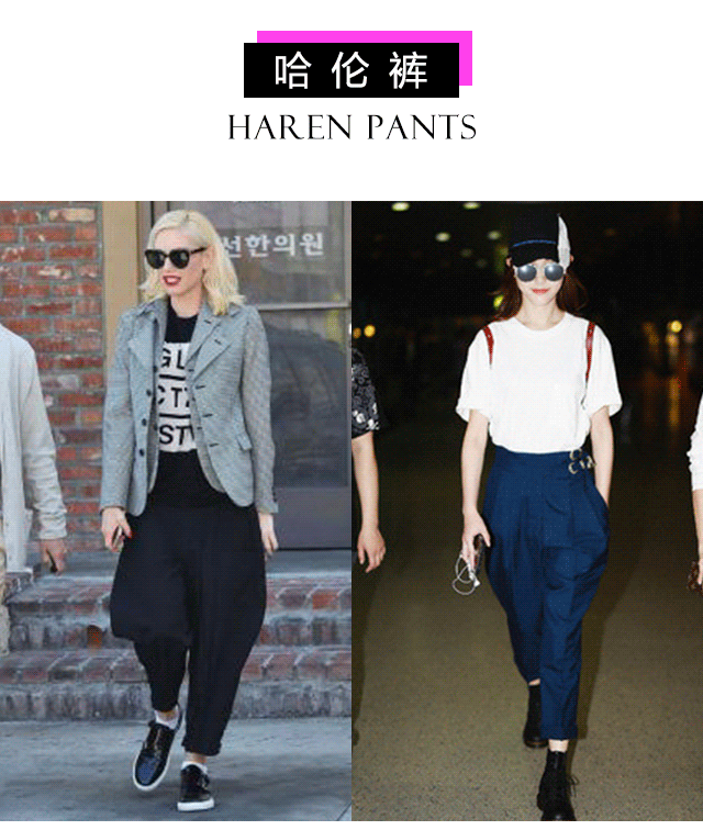 除了喇叭裤,唐嫣穿上哈伦裤同样有型,脚踩马丁靴,酷劲十足。哈伦裤最早来自保守的穆斯林妇女服装,设计师的妙手让它出现在T台之上,修饰身形的版型优势则让它受到了潮人们的追捧。然而,hold住它也不容易,选择版型时千万要避免太过松垮,否则只能成为“霍比特人”。