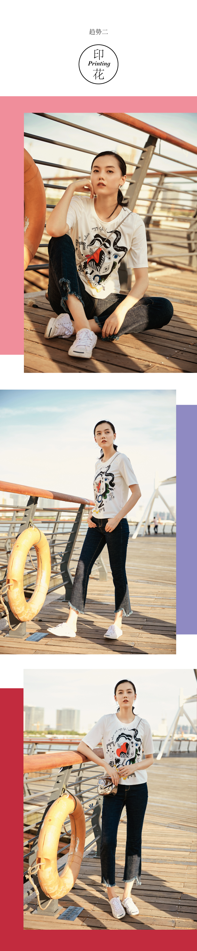 常换常新的时尚圈里,印花元素却未曾退出过舞台。尤其是今年大热的图案T,几乎人手一件,荣升大众最爱单品之一。JZ玖姿图案印花T,以抽象画作形式将爱心解构重组,用色大胆,充满艺术气息,“relax and enjoy life”更彰显人文关怀,就算一人过节也不会感觉孤单。