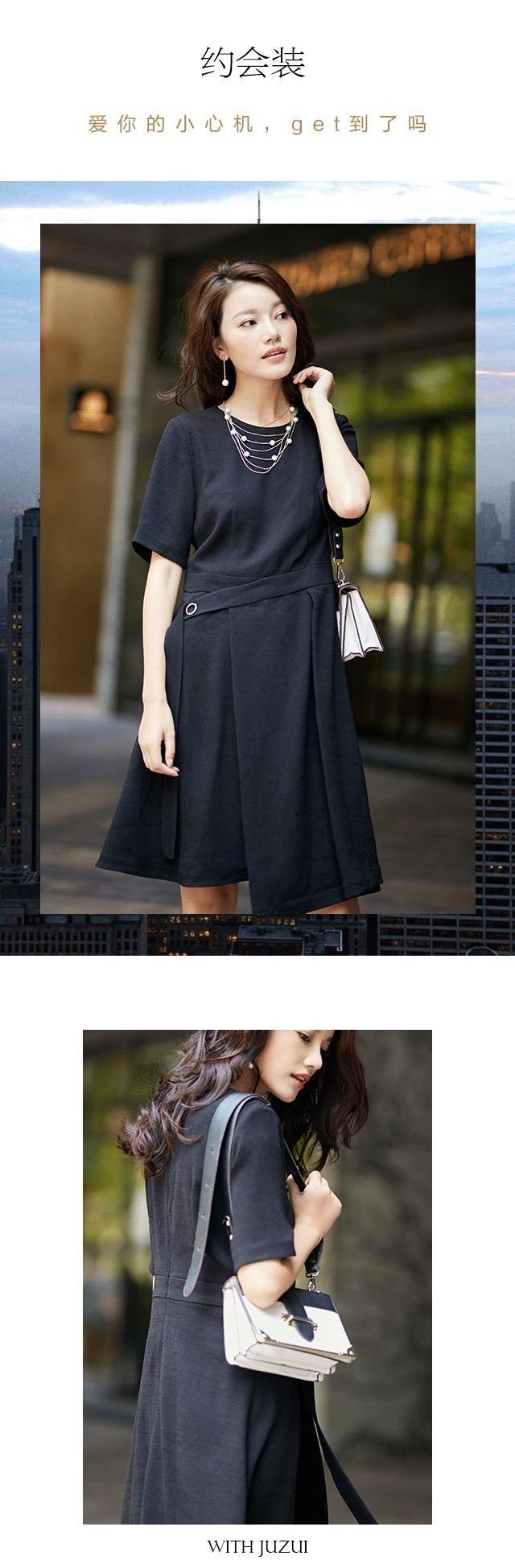 女人的衣柜里永远缺一件衣服,因为常换才能常新,而小黑裙却是不过时的单品。Karl Lagerfeld曾说:小黑裙总是刚刚好,不会显得过于朴素,也不会太过张扬。所以,周末赴约,这条小黑裙就能轻松应对,不对称裙摆,别出心裁,而腰部腰带及金属环设计,更是时髦。