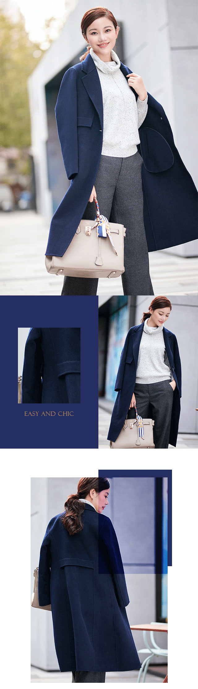 都说蓝色象征忧郁,其实,蓝色也是开阔的。JZ玖姿本款暮色蓝翻驳领大衣,繁星闪烁的夜空就是这个颜色,无垠且静谧;双面呢面料,温暖由身入心;内搭浅灰半高领山羊绒衫,提亮肤色,下搭精纺毛料直筒裤,随意时髦。