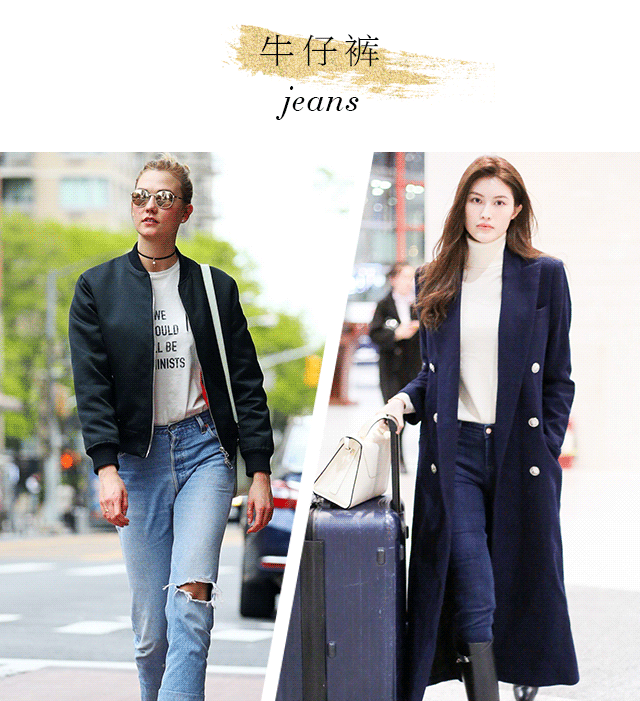19世纪50年代,牛仔裤横空出世,逐渐为社会各界所青睐,在瞬息万变的潮流圈更是风生水起,随着时间推移,成就了永恒经典。站在时尚前沿的超模们对TA也是情有独钟,Karlie Kloss以字母T搭配破洞牛仔裤,演绎街头帅气style,何穗则将高领毛衣、牛仔裤、长大衣穿出优雅范,由此可见牛仔的可塑性了。