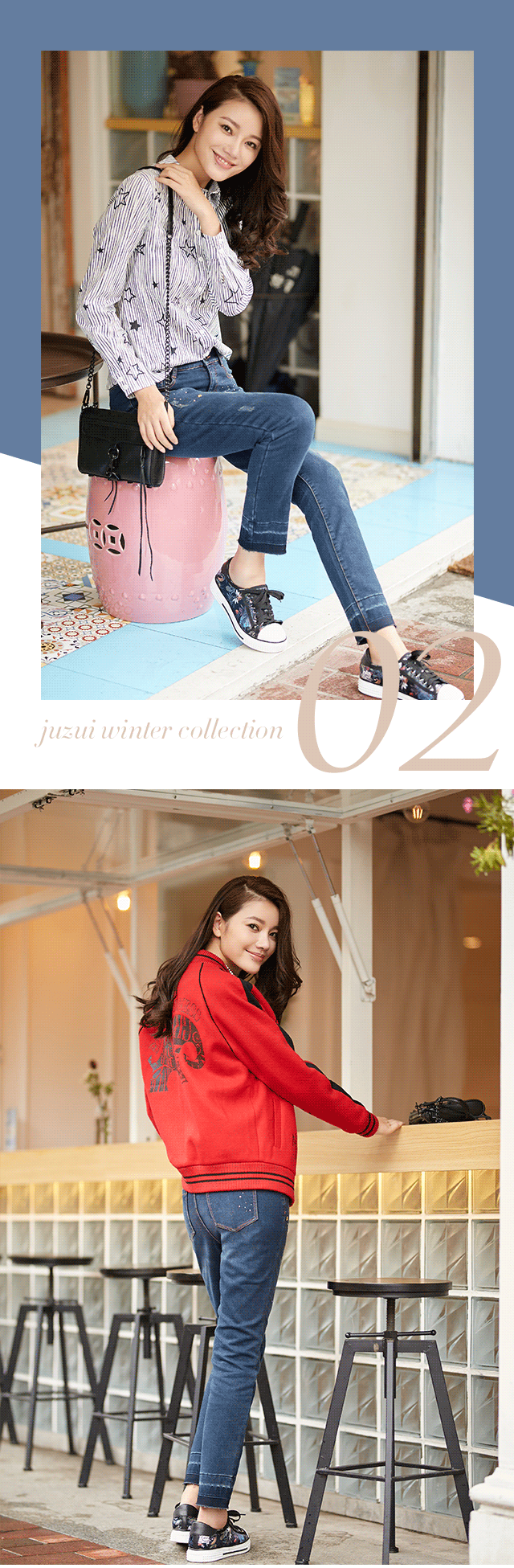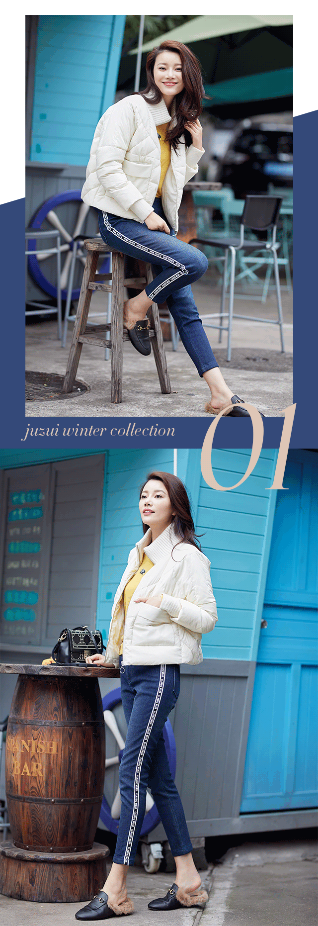 而2017年,JZ玖姿秉持探索精神,为经典牛仔注入新鲜活力。高弹面料与身体紧密贴合,有轻盈舒适之感,有塑造曲线之用;侧边织带装饰,则强调了鲜明个性,敢于不同,才能造就独一无二的自己。