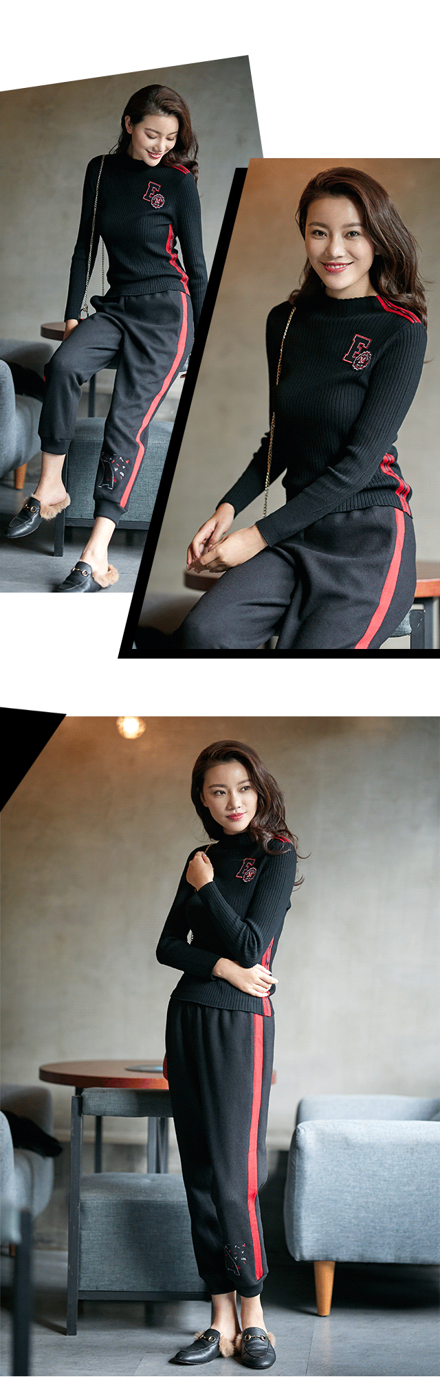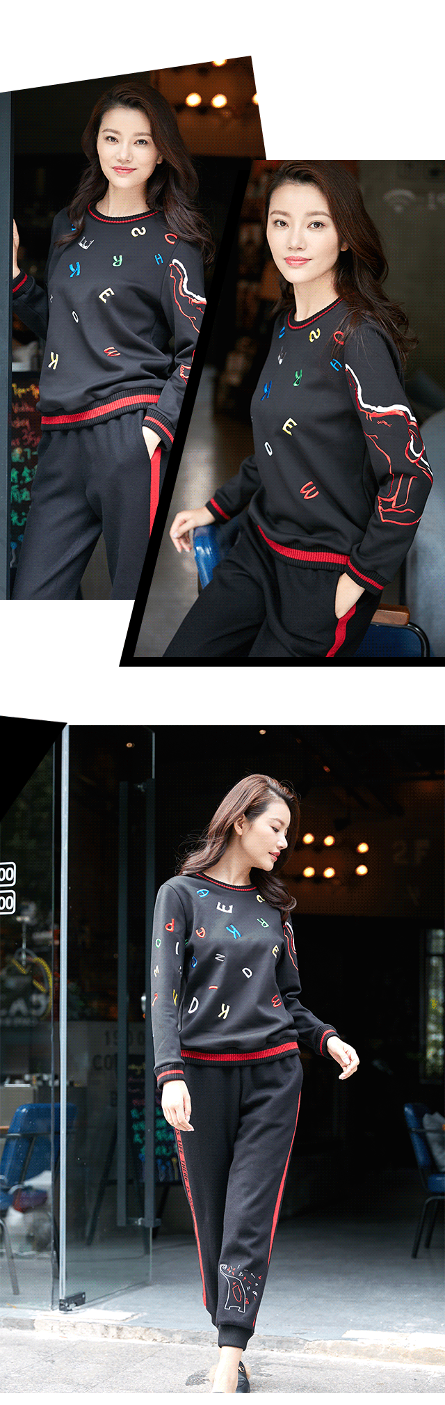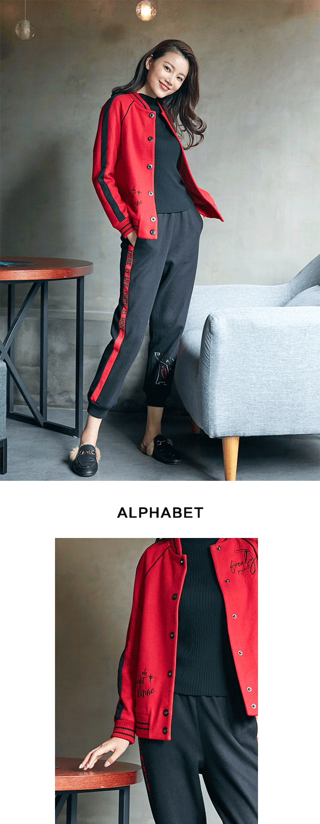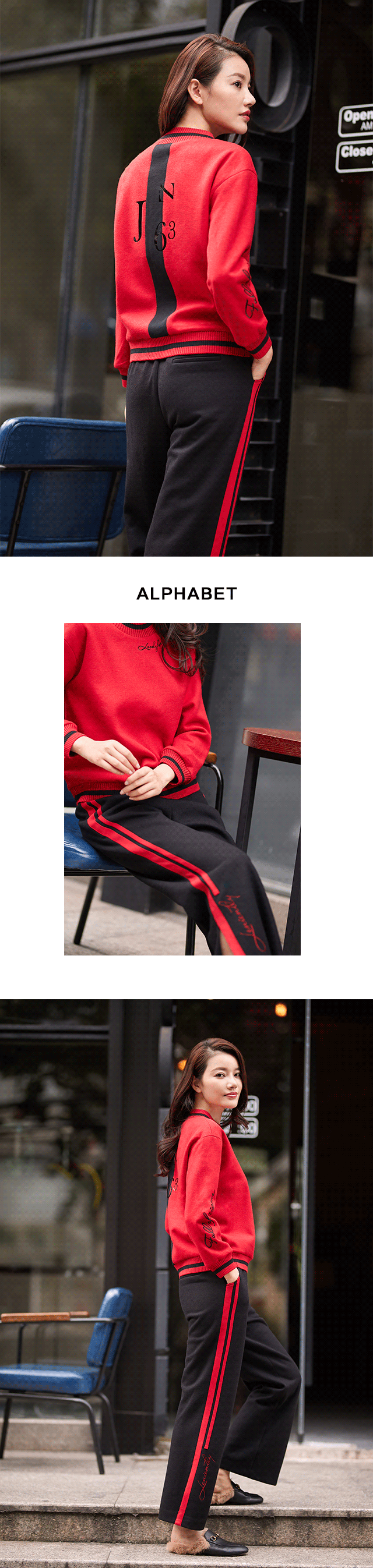 字母组成单词,这才具备了表意功能。红为主调,恰好迎合了十二月浓重的节庆氛围,黑为辅助,则平衡了红色的张扬,领口处的「Lovely Fantasy(可爱的幻想)」字样,演绎「精致」的运动风。搭配同系刺绣阔腿裤,下摆开衩,时髦出街。