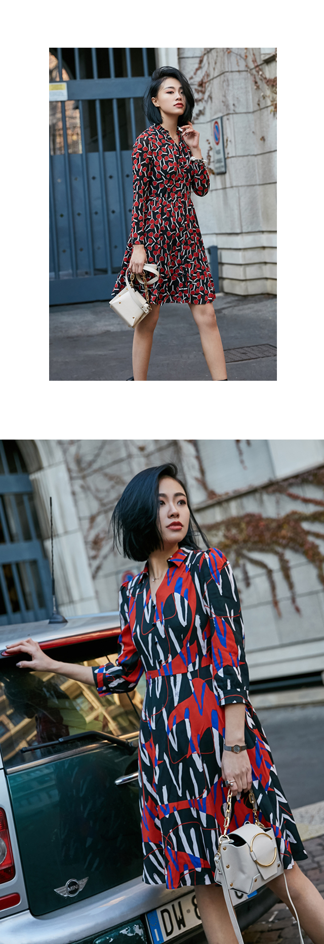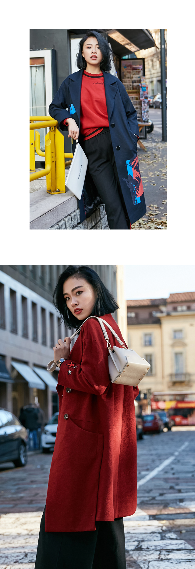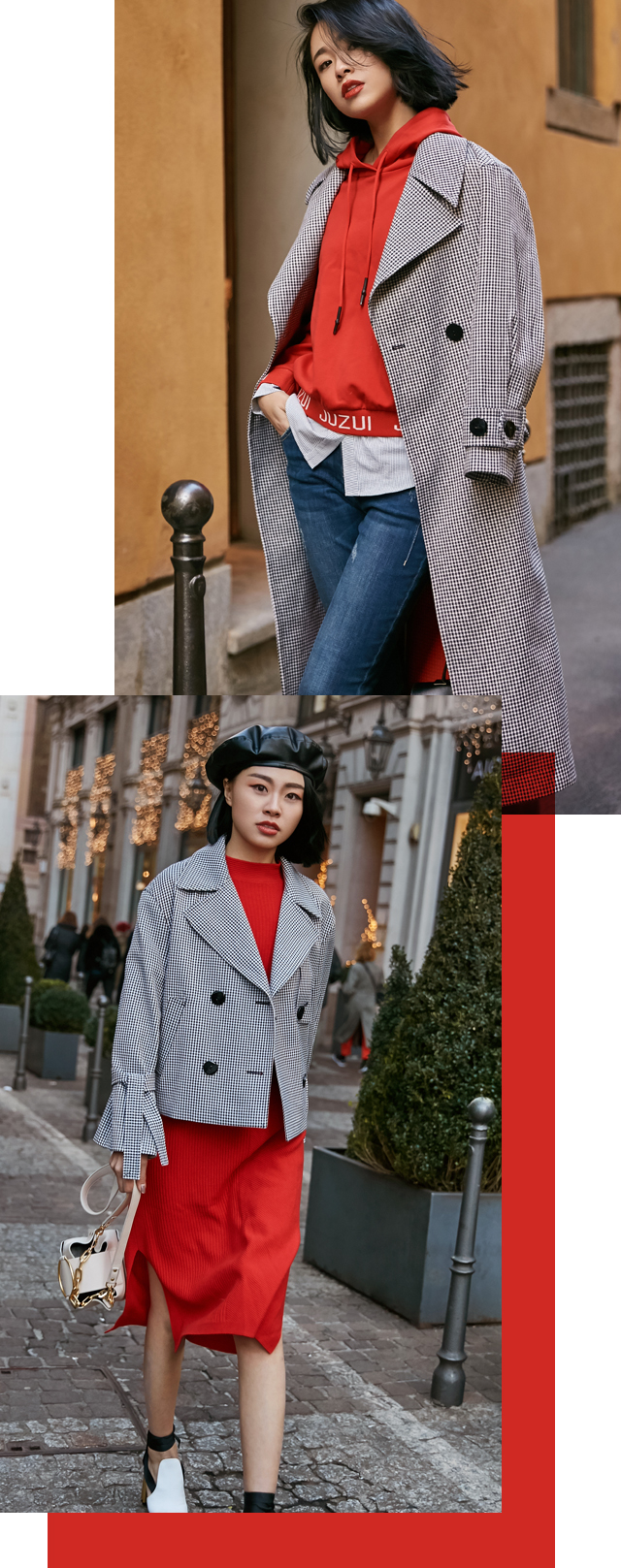 其实平时生活中我还是比较喜欢基本款,如果基本款中有一些细节设计会更吸引我,比如这次拍摄中那件千鸟格风衣后背的流苏刺绣就很有意思。走在米兰的大街上都很吸睛哦!