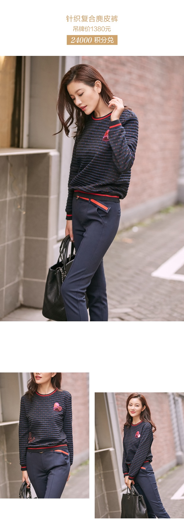 撞色与织带是Athleisure风潮中的绝佳搭档。相比黑色长裤,暮蓝色休闲裤修身显瘦的同时,更具独特性,撞色腰带既符合近年来大势的织带风潮,又能点亮整体造型。