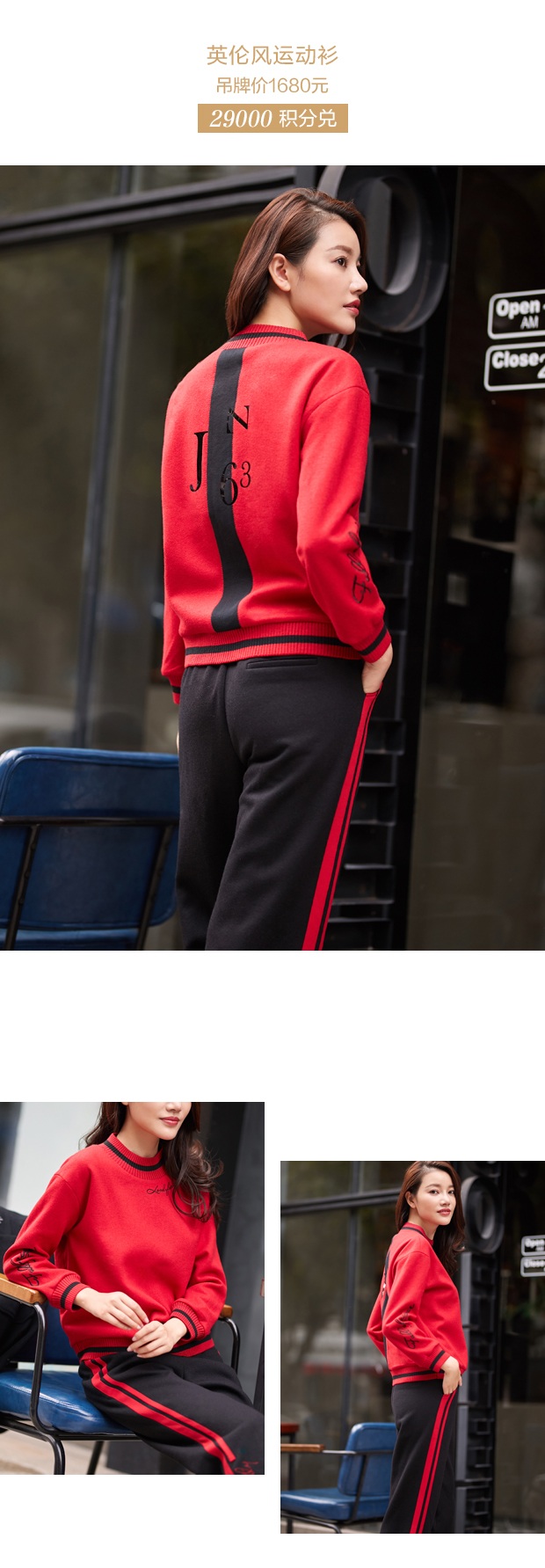 字母元素自从被运用在时尚圈就未退出过,自带潮流的属性使TA受到时尚达人们的热捧。JZ玖姿英伦风运动小衫以经典的黑与红做为主色调,将字母元素与拼接工艺结合,亮面织片与哑光面料相衬,领口、下摆与袖口的撞色粗罗纹增添运动新趣味。