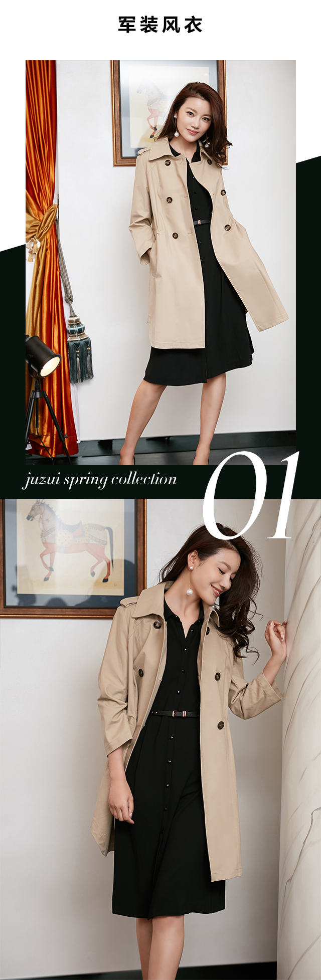 说到风衣,当然不得不提起“军装风”。由最初的高级军服演变而来,JZ玖姿设计师删去了为配合军事用途而设计的繁复细节,保留军装标志性的双排扣、肩盖的保暖厚片以及沉稳的大地色系,使风衣既具备军装的帅气利落,又拥有日常着装的简洁易搭性。