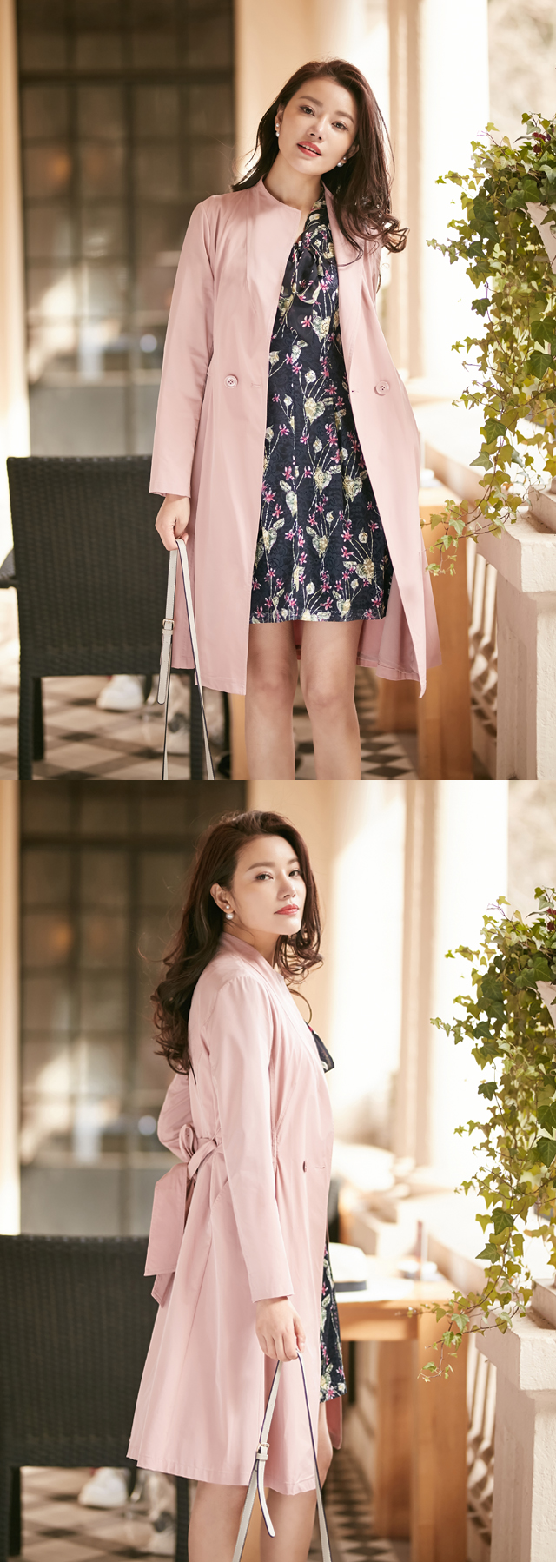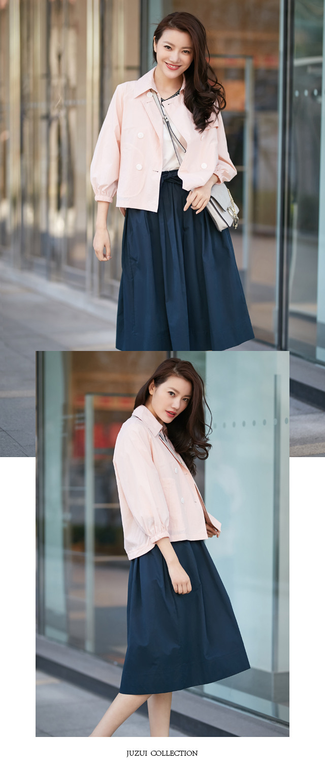 花开有期,时不待人,准备好行囊,就该出发了。既然是樱花季,怎么能少了樱花粉呢,浅浅的,浪漫中带着一点收敛却多了一份活力。JZ玖姿短款樱花粉色纸风衣,灯笼袖口蓬出少女感,与丈青系带长裙,撞出别样清新。