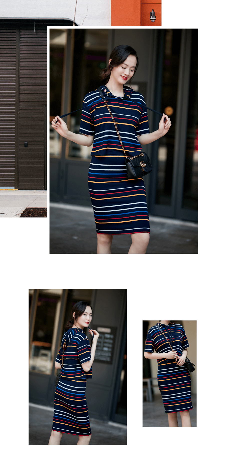 条纹亦是时髦运动风不可缺失的要素之一,尤其装饰于侧边之后,得到了大批时尚人士的宠爱,竖向延伸的条纹,更容易勾勒出优美曲线,裙边的开衩,随性而性感,为日常的休闲带去美好的心情。
