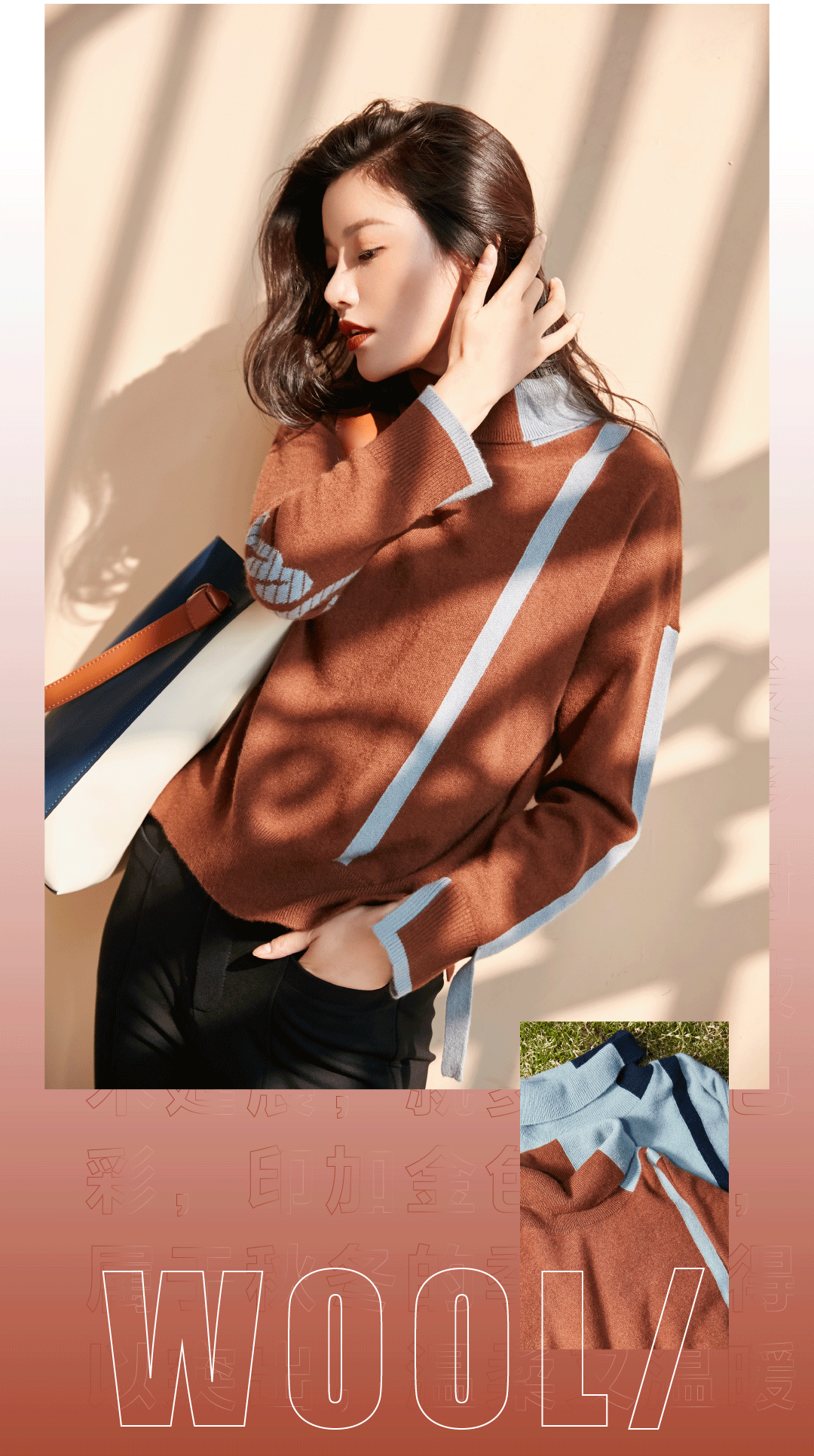 在染色技术还未被发明之前,羊绒衫大多以灰色为主,恰好衬托高级质感。随着技术延展,就多了些色彩,印加金色加入,属于秋冬的季节感得以突出,温柔又温暖。