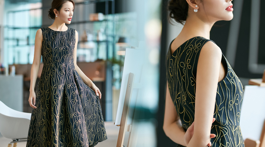 光与影阡陌交错 明与暗千变万化 在钢琴的黑白琴键上 在建筑的流畅线条下 延伸出条纹的无限可能 谱一曲时装协奏曲